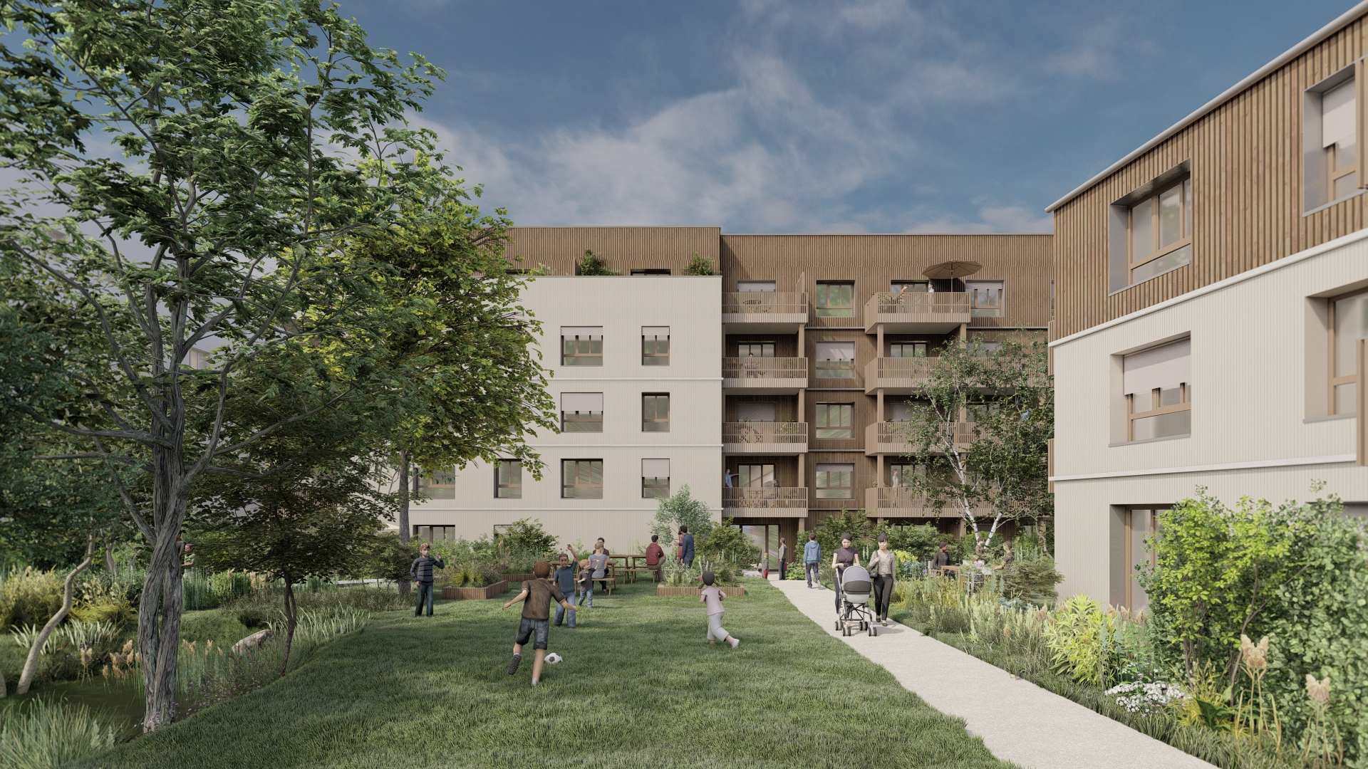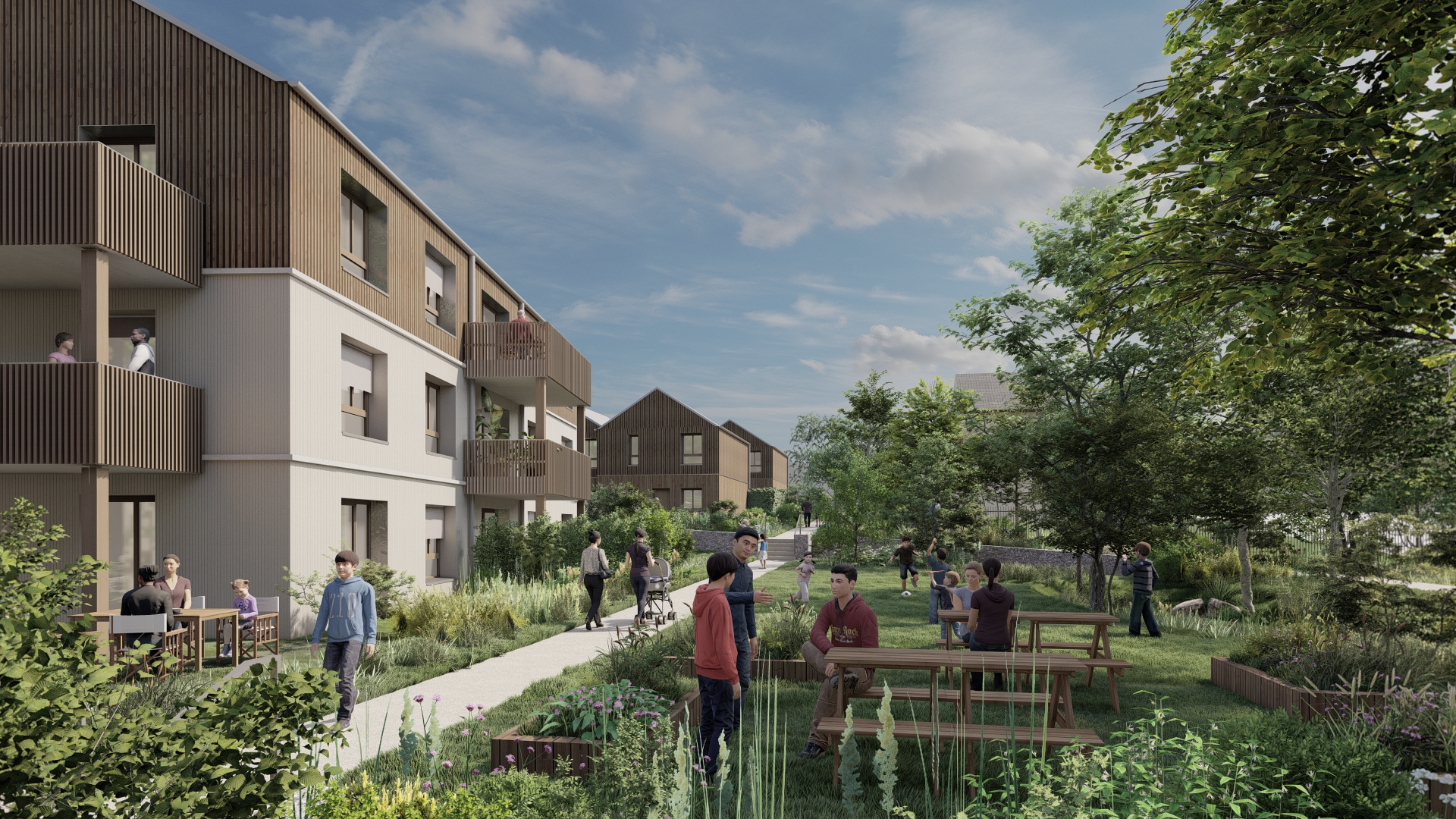 - Le projet architectural se caractérise par sa diversité et sa modularité, puisqu’il se déclinera du bâtiment collectif à la maison de ville, avec des espaces extérieurs généreux, et ouvrira à des possibilités de participation et de scénarios d’organisation diversifiés pour les habitants.